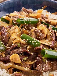 Halloumi und Pilze mit Kikkoman Ponzu Zitrone, Ahornsirup, Paprikapulver und Cumin marinieren. Alles mindestens 30 Minuten ziehen lassen. Anschließend gleichmäßig auf Schaschlikspieße verteilen. Die Spieße zum Servieren im Ofen bei ca. 220 °C Umluft 10 bis 15 Minuten schön braun rösten.
