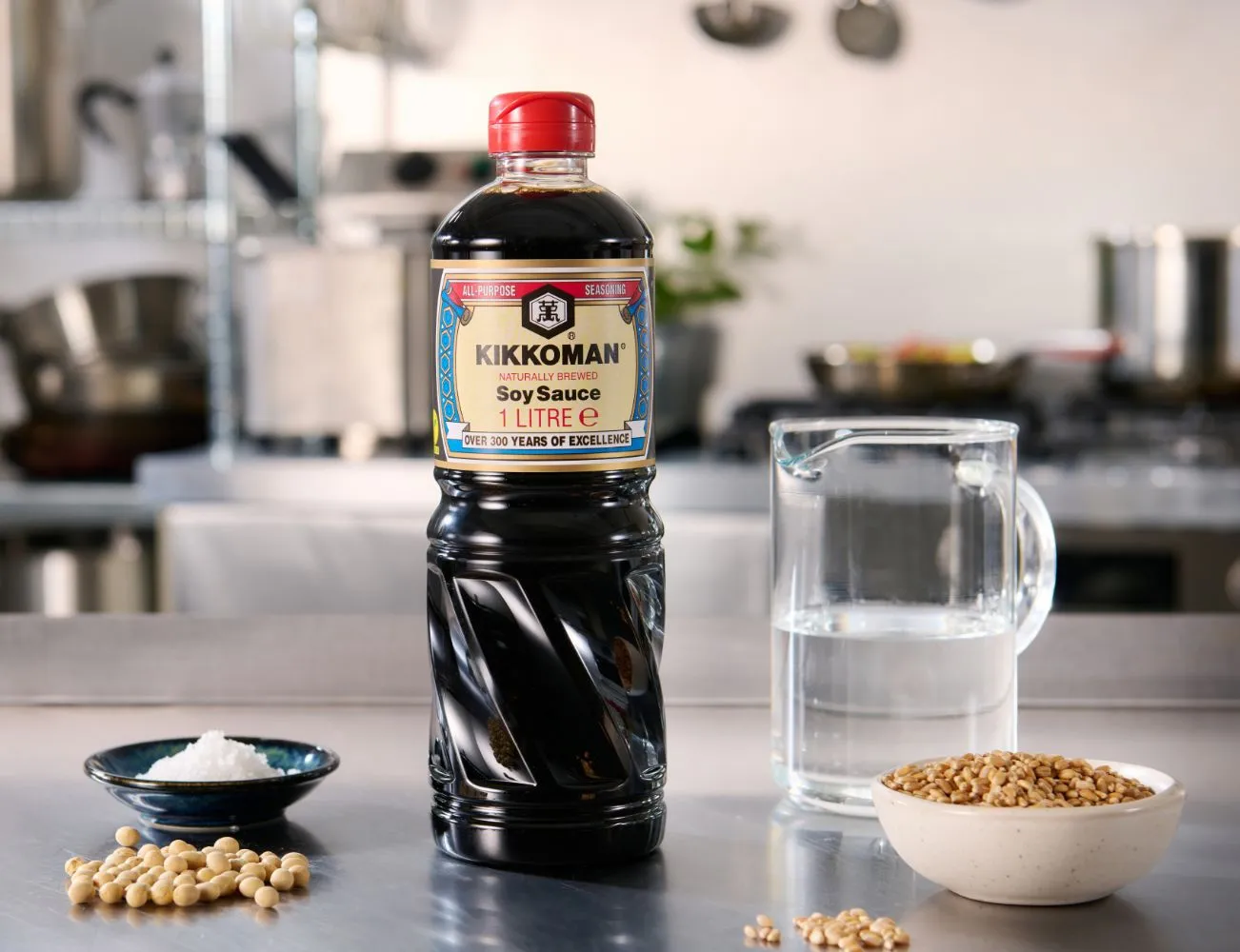 Die Kikkoman natürlich gebraute Sojasauce wird aus vier sorgfältig ausgewählten Zutaten hergestellt: Wasser, Sojabohnen, Weizen und Salz. Alle Sojabohnen sind garantiert Gentechnik-frei. Auch auf sonstige Geschmacksverstärker, Konservierungs- oder Farbstoffe verzichten wir.