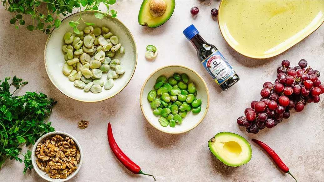 Süsse Trauben, cremige Avocado und zarte Saubohnen treffen in diesem farbenfrohen Sommersalat auf knackige Walnüsse, abgerundet mit einer würzigen Chimichurri-Sauce – köstlich als Hauptgericht, Beilage zum Lunch oder zu Grillgerichten.