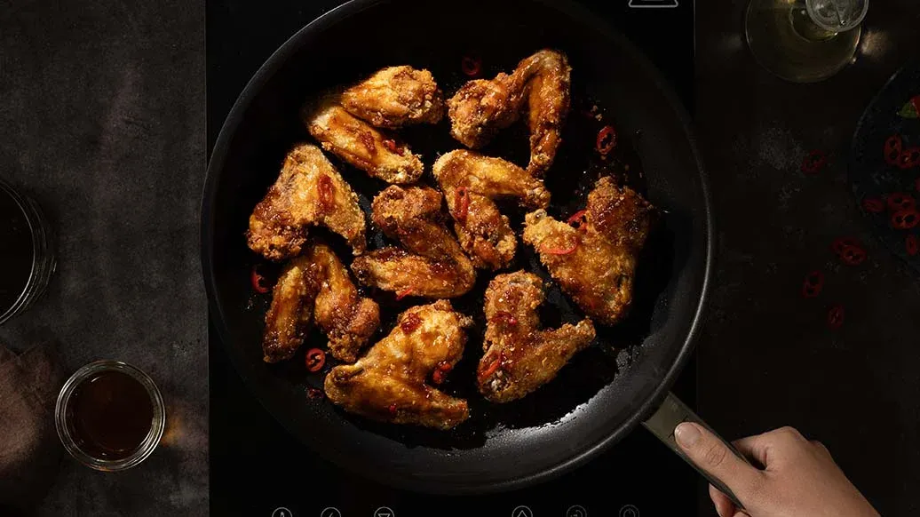 Das Geheimnis für wirklich knuspriges und saftiges koreanisches Poulet liegt im doppelten Frittieren – genau wie bei Pommes frites. Der zweite Teil des Geheimnisses ist die perfekte Glasur mit Kikkoman Teriyaki BBQ Sauce Korean Style.