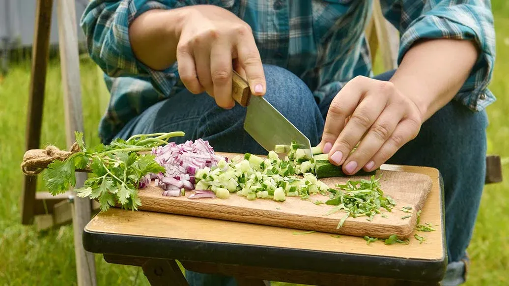 Quinoa in kochendem Wasser 10 bis 15 Minuten garen, bis sie weich ist. Abkühlen lassen. Die Gurke in kleine Würfel schneiden, Zwiebel fein hacken, Chilischote hacken und die Tomaten würfeln. Minze, Koriander und Petersilie hacken. Gemüse und Kräuter in eine Schüssel geben. Quinoa, Kikkoman Ponzu Zitrone und Olivenöl zufügen und alles gründlich vermengen.