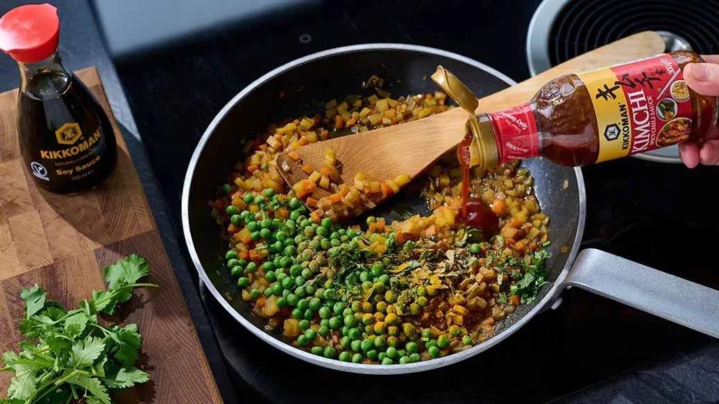 Zum Dippen mit Kikkoman Sojasauce oder, wer es gerne scharf mag, mit Kikkoman Kimchi Chilisauce servieren.