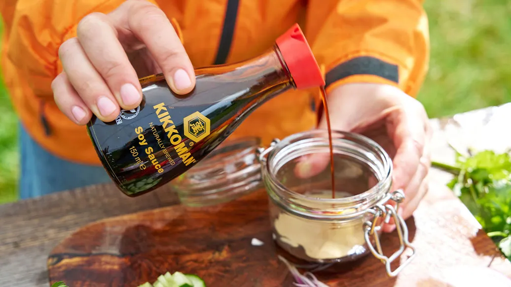 30 ml Kikkoman natürlich gebraute Sojasauce – 10 ml Reisessig – 10 ml Ahornsirup oder Honig – 10 g Tahini